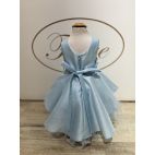 ideale per primo compleanno. Tessuto in raso un po' brillantinato. Colore: cielo. Made in Italy.