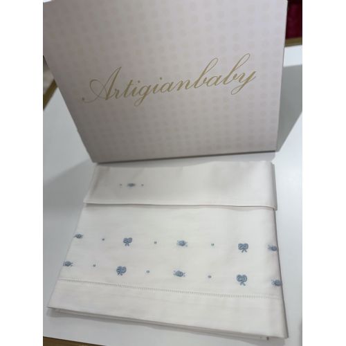 Lenzuola bianca con nodo d'amore, punto smock e fiori cielo .