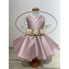 Vestina con corpetto panna manica lunga, in vita un nastro di ciniglia Marrone con fiocco al centro gonna con fantasia di fiori autunnali e colletto uguale !