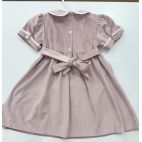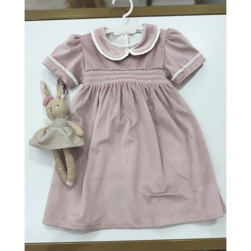 Vestina in velluto mezza manica con punto smock in vita panna. colore Glamour Rose.