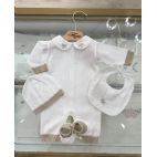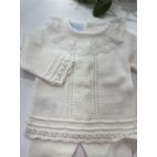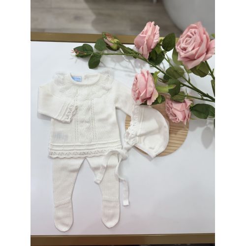 Completino con merletto in filo di cotone con cuffia. Romantica. Colore: crudo