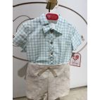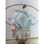 Brand: Del Sur. Tema: Modena . completio 2 pezzi: camicia a quadri turchese e bianco e dettagli sulle maniche in lino e pantaloncino a culotte beige.
