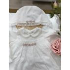 Brand: Marlú. Completino in cotone foderato e Rossellini sul petto ricamato a mano e culotte. Colore: Vaniglia/Rosa. 100% cotone. Made in Italy.
