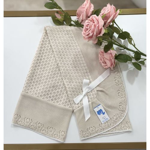 Maxi coperta traforata in filo di cotone. Colore: Natural. 50% cotone 50% acrilico. Made in Spagna.