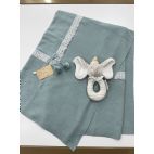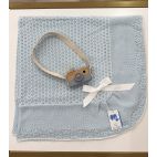 Brand: Mac ilusión. Maxi Coperta in filo di cotone bella elaborata con traforatura sia al centro che al bordo con fiocco bianco e bordino bianco. Colore: Serenity.