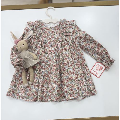 Vestina con fiorellini manica lunga. 100% cotone. Fodera 52% poliestere 48% cotone.
