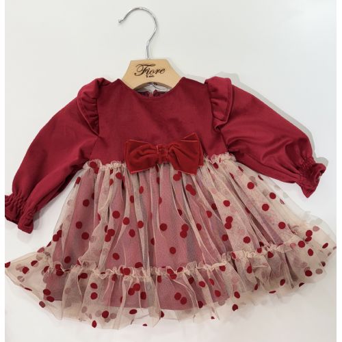 Vestina in velluto rosso con fiocco medio al centro e gonna in tulle e pois !