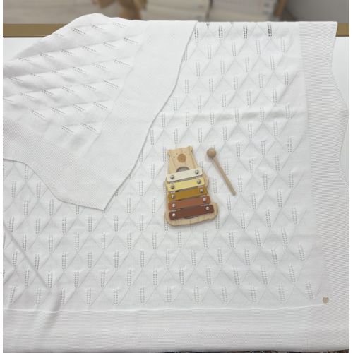 Scialle bianco traforato UNISEX Con bordo ondulato. 100% cotone.