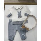 Tutina tortora con orsetto e palloncino verde .100% lana pettinata
