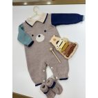 Tutina in ciniglia bianca e colletto tortora con cassetta e machine 🤍