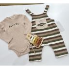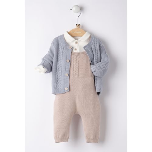 Salopette tortora con body in caldo cotone con colletto e bottoni, cardigan polvere . 80% cotone 20% lana