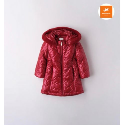 Giubbino cherry lungo impermeabile in tessuto perlato con impuntura a cuore. imbottitura in ovatta, cappuccio staccabile. animal frree
