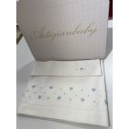 Lenzuola 100% cotone. Misura da carrozzina composto da lenzuola sotto con angoli, lenzuolo sopra con ricamo e fodera per cuscino !