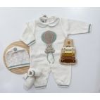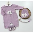 Completino in filo di cotone Romántico Con la sua cuffia. Colore: Crudo. 50% cotone 50% acrilico.