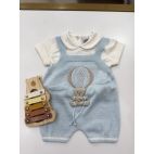 Brand: Marlú. Set nascita a pagliaccetto con mongolfiera e orsetto, cappellino e babbucce coordinate. 100% cotone. Made in Italy.