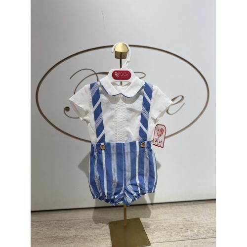 Pagliacetto avion a righe con camicia bianca e bordino del collo ricamato apertura dietro.
