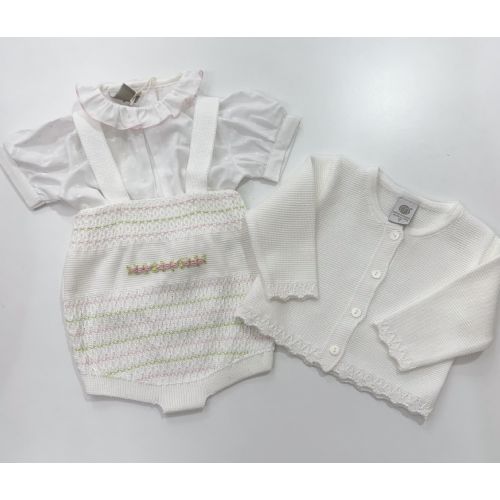 Brand: Marlù. Pagliaccetto bianco con Roselline ricamate e cardigan in Filo di cotone. 100% cotone. Made in Italy.