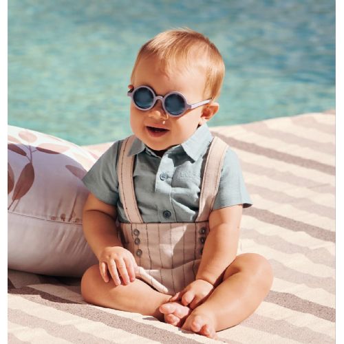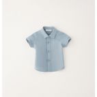 Camicia a manica corta per neonato Minibanda realizzata in lino e cotone. Apertura davanti con bottoni. Modello classico. • Colore VERDE ACQUA-3955: 55%Lino 45% Cotone.