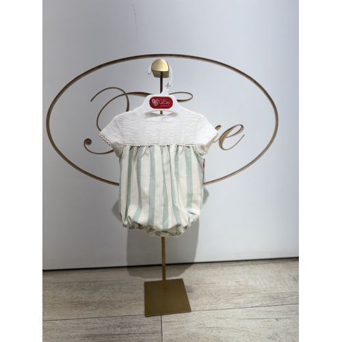 Pagliaccetto unisex in lino e cotone. Colore: verde empolvado e panna.