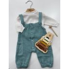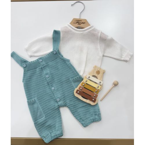 Brand: Pappa & latte. Salopette ottanio con maglia bianca in filo di cotone.