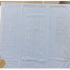 Brand: bebèmargò. Scialle in filo di cotone azzurro con elaborazione a trecce e rombi e piccoli cavallucci a dondolo. 100% cotone. Per passeggino. Made in Italy.