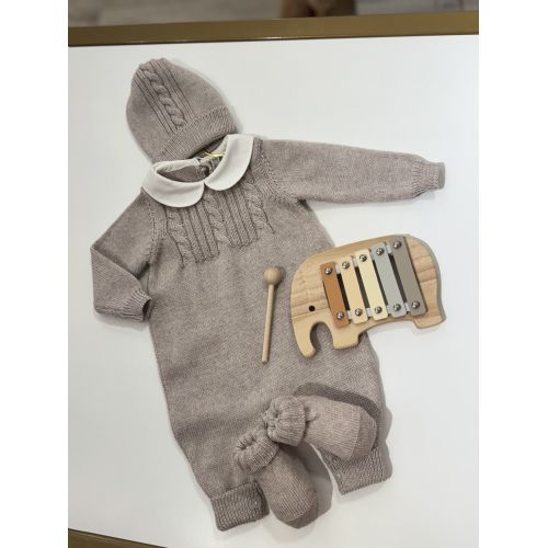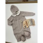 Tutina tortora con cappellino e babbucce unisex. 100% lana pettinata. Prodotto artigianale.