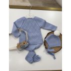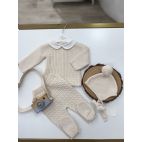 Completino con maglietta con la dedicatoria I ❤️ Dad colore tortora manica a righe natural/verde bosco e arancione, pantalone verde bosco, cappellino e babbucce coordinate.