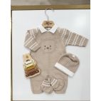 Tutina con leone in filo cotone, cappello e babbucce. 100% cotone.