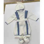 Pagliaccetto bianco e avion con cappello e babbucce Misto Lana. 50 % lana 50% acrilico. Made in Italy.