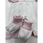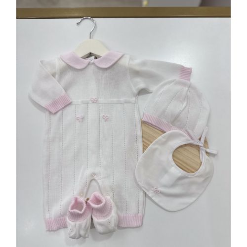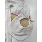 Brand: Bebèmargò. Uscita clinica in filo di cotone. comprende: Tutina, cappello, bavetta e babbucce. Colore: Panna/ Rosa. 100% cotone. Made in Italy.