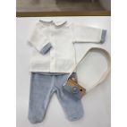 Completino: maglia con finta camicia a quadretti e coniglio 3D al centro, collo con bordino e ghettine polvere.