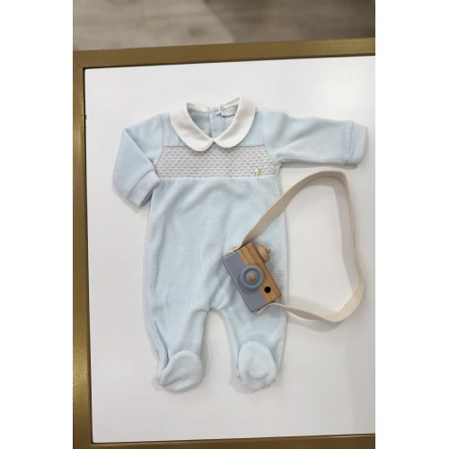 Tutina cielo con nido d'ape, colletto bianco. Made in Firenze.