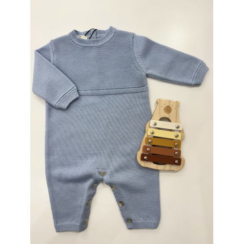 Brand: Maglificio di Verona. Tutina azzurra in lana con bottoni sul retro e sulle gambe in madre perla.