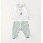 Brand: Minibanda. Tutina Unisex con escrita sul petto new one in the family. A fantasia con animale e cappellino coordinato.