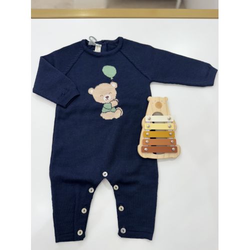 Brand: Maglificio di Verona. Tutina in lana blu con orsetto tortora e palloncino verde. 100 % Lana merino. Made in Italy.