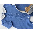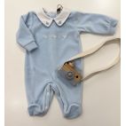 Brand: La sartoria dei piccoli. Tutina in misto lana azzurrone con collo bianco trecce al centro e dettagli bianco. 50% lana 50% acrilico.