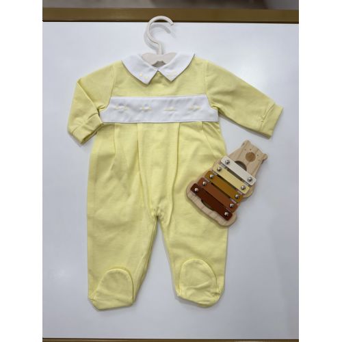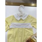 Brand: Jodus fashion. Tutina Gialla in cotone con punto smock sul collo e petto, chiusura sul retro. 100% cotone.