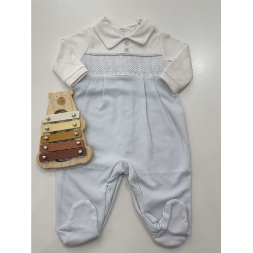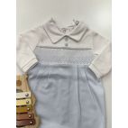 Brand: Blues baby. Tutina in caldo cotone con Nodo D'ape in petto. Colore: azzurro e bianco. 100% cotone. Made in Portugal.