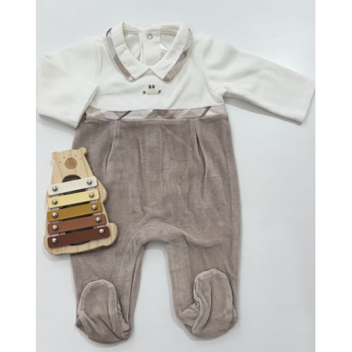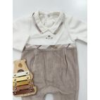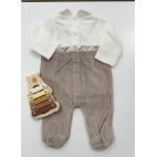 Brand: Mayoral. Tutina bicolor in ciniglia bianca e nuez. 80% cotone 20% Poliestere. Made in china.