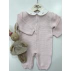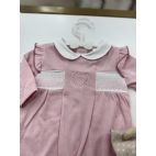 Tutina rosa in cotone con cuore al centro ricamato e nido di ape laterale.
