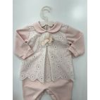 Tutina con pizzo sangallo. Colore: Salmone. 100% cotone. Made in Italy.