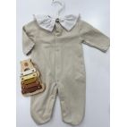 Brand: Jogus fashion. Tutina di cotone tortora con collo bianco ricamato.
