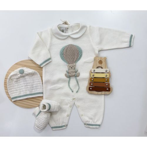 Brand: Marlú. Tutina in filo di cotone Unisex. Tema: mongolfiera. Colore: Vaniglia/ verde salvia. 100% cotone. Made in Italy