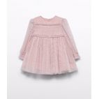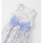 Abito smanicato per bambina Sarabanda realizzato in tulle con fanntasia all over e foderain cotone. Apertura dietro con zip invisibile.Lunghezza al ginocchio. Cintura in vita con fiocco realizzata in tulle