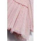 Vestina manica lunga cipria con pois malva in tulle e brillantini dorati. Rouches in polsino.