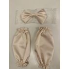 Manicotti abbinati elasticizzati e fascia in pizzo elastico e fiocchettone abbinato.