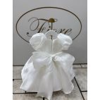 Brand: Isabel. Abito bianco elegante in organza a mezza manica semplice e allo stesso tempo romantico con fiore in vita a spilla( potete tranquillamente togliere).
