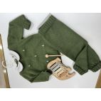 Completo 100% lana pettinata. Verde bosco con punti tortora. Prodotto artigianale. Made in Italy.