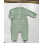 Tutina in ciniglia verde salvia, orsetto sul petto e dietro . Unisex