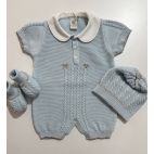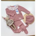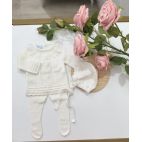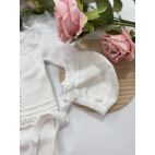 Completino con merletto in filo di cotone con cuffia. Romantica. Colore: crudo